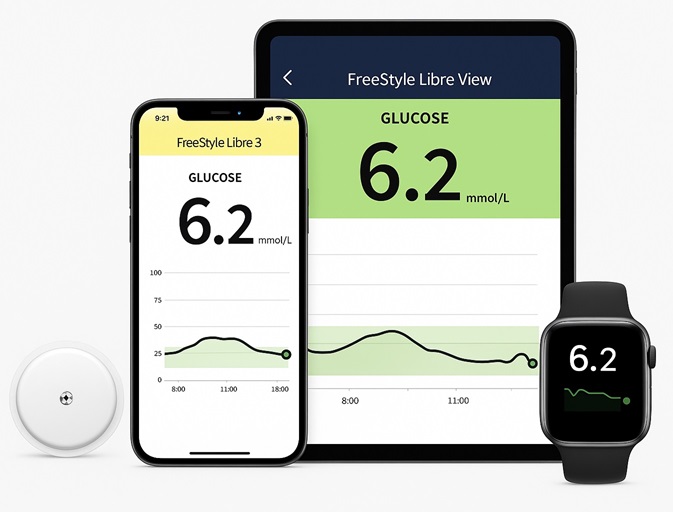 Install the Glucowatch app on your apple watch and link using the libreView system. With this, you can conveniently view your blood glucose levels near real-time on your apple watch.