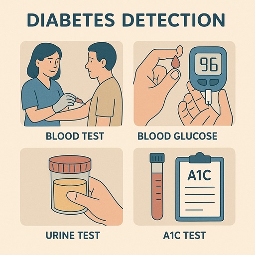 Detecting diabetes involves medical tests that measure blood sugar (glucose) levels.Â